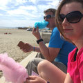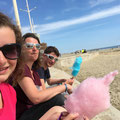 Mit einem Touristenzug ging es vom Campingplatz direkt nach Canet-en-Rousillon. Der Strand hier war schön, ziemlich breit und es hatte wenig Touristen. Leider war ausser einem Lauf mit kostümierten Läufern auch nicht allzu viel los, nur wenige Läden hatten geöffnet. Wir kauften noch Zuckerwatte und danach ging es wieder zurück zum Camping. Luca und Martin machten noch einen ausgiebigen Strand-Spatziergang und zum essen holten wir uns eine feine Pizza.
