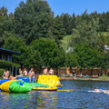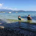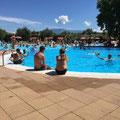 Wir genossen nun noch den Abschluss unserer Ferien gingen an den Pool oder an den See, hörten am Sonntag Radio Gäüb Schwarz und gingen am Montag Abend noch im Restaurant auf dem Camping essen. In der Nacht auf Montag kam noch ein starkes Gewitter auf und so hiess es mitten in der Nacht noch Store einziehen und Luca hineinholen, der schlief wir immer diese Ferien draussen im Zelt.