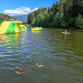 Heute war das Wetter gut, und nachdem die Kinder auf dem Wasser waren machten wir uns auf zur Muttersalm. Den Weg dorthin konnte uns niemand so richtig erklären. Die Bergbahn war bei unserer Innsbruck Card mit dabei. Doch die Dame an der Information vom Camping und auch der Busfahrer wussten nicht richtig bescheid. Wir fuhren dann mit dem Bus bis Mutters und dort dann weiter mit dem Zug bis zur Haltestelle der Muttersalmbahn. Wir mussten dann noch etwa 15 Minuten hoch laufen bis wir bei der Bahn waren. Mit der Gondelbahn oben angelangt gab es ein feines Mittagessen. Danach liefen wir zum See hoch und genossen die schöne Aussicht. Zurück ging es dann wieder mit der Gondelbahn und dem Zug. Die Haltestelle vom Bus fanden wir nicht auf anhieb und so fragten wir in der Touristeninformation nach. Doch auch ihre Kenntnisse waren nicht so detailliert, wir fanden die Haltestelle aber dann selber bei einem Hotel und fuhren dann mit dem Bus zurück.