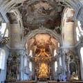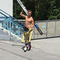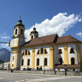 Da wir ja gestern beim Besuch der Schanze, keinen Springer sahen wollten wir das heute noch nachholen. So fuhren wir am Mittag noch mal zur Bergiselschanze  und diesmal war wirklich ein Springer zu sehen. Es war nur einer und so dauerte es jedesmal eine gewisse Zeit bis er wieder oben war und wir ihm beim Sprung zusehen konnten. Danach liefen wir in Stadt hinunter und besichtigten dort noch die Basilika Wilten eine schöne Kirche gleich unterhalb der Schanze. Dann ging es mit dem Bus wieder zurück zum Campingplatz.
