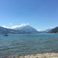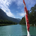 Heute Sonntag gingen wir nach dem Morgenessen nach Interlaken in die Stadt. Wir liefen ein wenig der Touristenstrassen entlang und beobachteten dann die Gleitschirmflieger wie sie auf der Höhematte landeten, gegenüber vom Hotel Victoria Jungfrau. Es war eindrücklich wie viele Touristen hier zu Tal geflogen werden. Wir liefen dann wieder zurück und nahmen dort das Schiff, wieder zurück zum Camping. Am Mittag grillierten wir dann noch und packten langsam zusammen und machten uns auf den Heimweg.