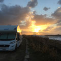 Wir durften uns einen Platz aussuchen was bei dieser Grösse von Campingplatz schon etwas dauerte. Der Wind war stark, doch wir entschieden uns trotzdem für einen Platz in der obersten Reihe. Die Solothurner die auf der Fähre neben uns waren, waren ebenfalls auf diesem Camping. Wir genossen unser Apero wieder am Strand, dies aber fast bei starkem Wind mit Orkanstärke :-) und danach erkundeten wir noch den Campingplatz und genossen den Abend mit der schönen Aussicht aufs wilde Meer.